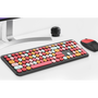Kit tastatura si mouse wireless MOFII 666, 112 taste, 3 butoane, 1200 dpi, Negru/Rosu