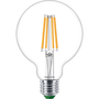 Philips Bec cu filament transparent 60 W G95 E27. Putere lampă: 4 W, Echivalent bec de putere: 60 W, Tipuri de lampa-capac: E27, Flux luminos: 840 lm, Durată de viață bec: 50000 h, Culoarea luminii: Alb cald, Temperatura culorii: 2700 K, Index de Redare Culoare (CRI): 80, Factor putere: 0,4