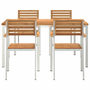 Setul de dining grădină cu 5 piese este realizat din lemn solid de tec, combinând stilul cu utilitatea pentru mese deosebite în aer liber. Designul său elegant, cu suprafețe netede, îi dă un aspect plăcut, perfect pentru întâlniri pe terasă, balcon sau în grădină.