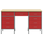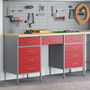 Set dulap de lucru cu masă, 3 piese, roșu, lemn și oțel